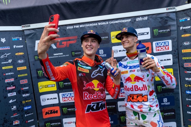ProdukBalap.com – Dengan menempatkan diri diposiis kedua pada dua sesi balapan kelas MX2, dua Andrea Adamo mendapatkan kemenangan podium satu pertama kalinya kepada para penggemarnya di GP Trentino. Hasil podium juara pada pertemuan keempat musim motorcross dunia. Pembalap Italia itu memenangkan GP pertama dalam karir mudanya sementara rekan setimnya Liam Everts yang peraih skor 3+3 naik podium dunia pertamanya, diikuti Jago Geerts posisi ketiga untuk mendampingi dua pembalap KTM di podium MXGP Italia.